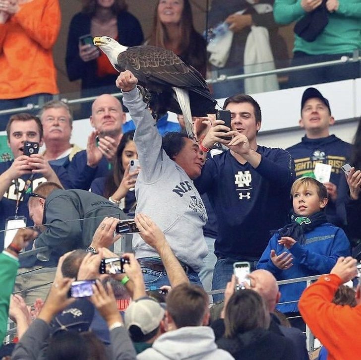 Белоголовый орлан внезапно сел на руку болельщика во время футбольного матча