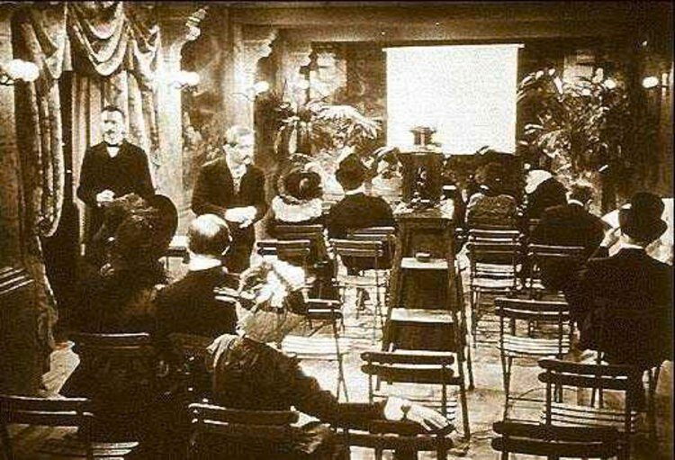 Первый публичный киносеанс Огюста и Луи Люмьеров в 1895 году в парижском «Гран-кафе» на Бульваре Капуцинок