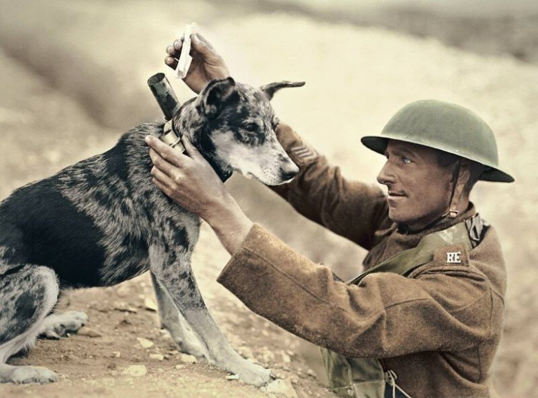 Солдат отправляет сообщение во время Первой мировой