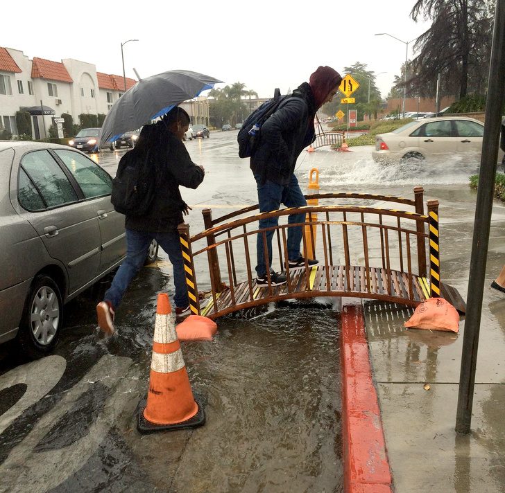 Когда улицы затопляет дождевой водой, можно установить такие мостики для пешеходов