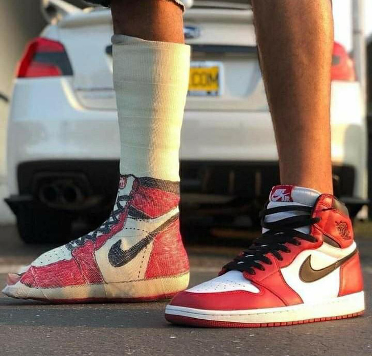 Для лучшего эффекта осталось только надеть на левую ногу длинный белый носок
