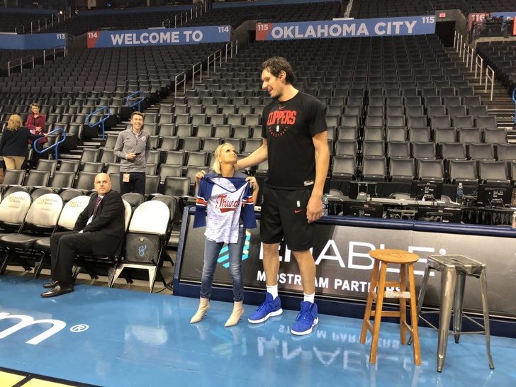 Баскетболист Бобан Марьянович и певица Кристин Ченовет перед совместным выступлением