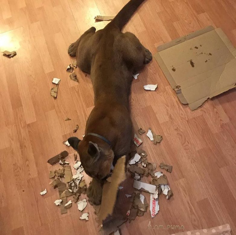 Таким образом, вот уже несколько лет 40-килограммовая кошара живёт в простой человеческой квартире и в ус не дует. Такие домашние питомцы в цивилизованном обществе встречаются редко, поэтому хозяева 3-летней пумы по имени Месси подробно документируют свою жизнь с ним. И его жизнь с ними.