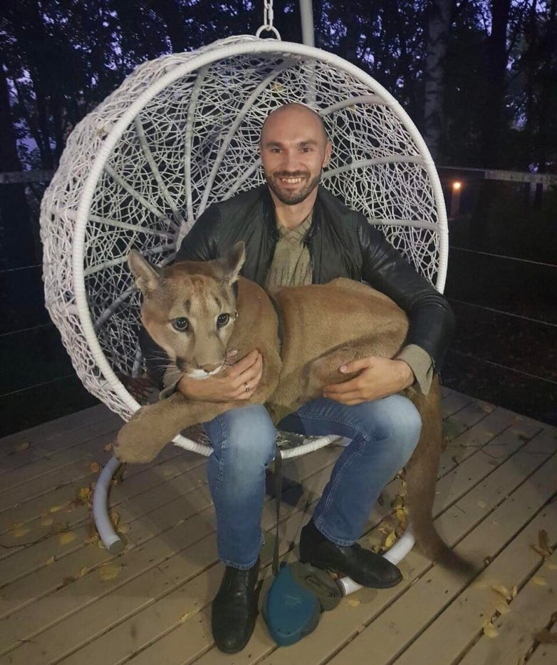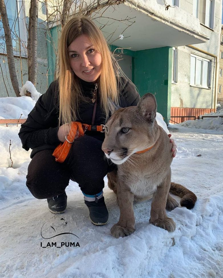 Просто эта пума могла погибнуть. Пума небольшая для своего вида и довольно покладистая. Когда человек одомашнивал диких животных, он выбирал тех, кто менее агрессивен.Но, конечно, животным лучше жить на свободе, а не на потеху людям. Но тут особый случай.