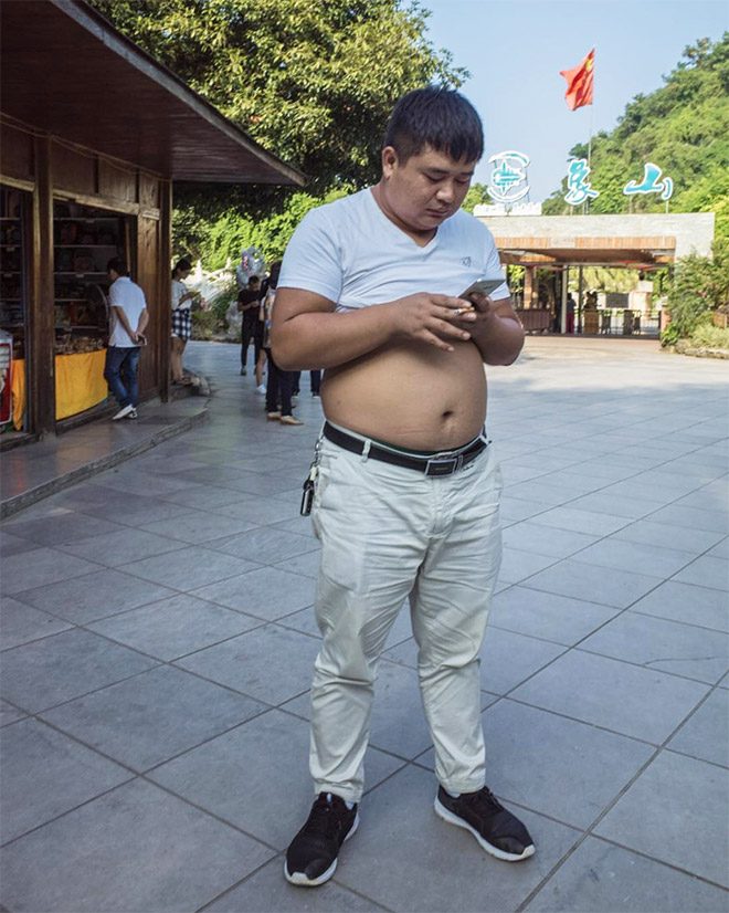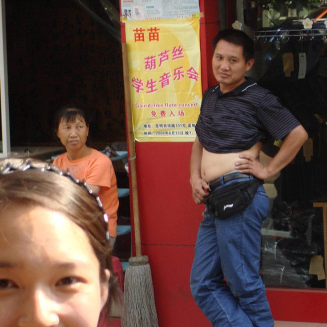 У живущих в Пекине мужиков (в основном у рабочего класса) есть странная традиция. Когда летом допекает жара, они закатывают футболки и ходят с голым пузом. Этот стиль китайцев называют пекинским бикини.