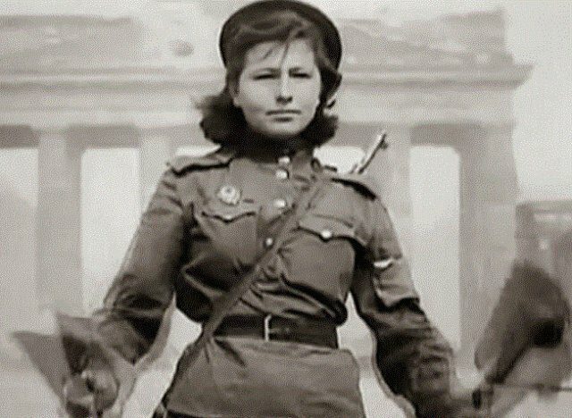 Мария Лиманская контролирует дорожное движение у Бранденбургских ворот. 2МВ. Германия. 1945 г.