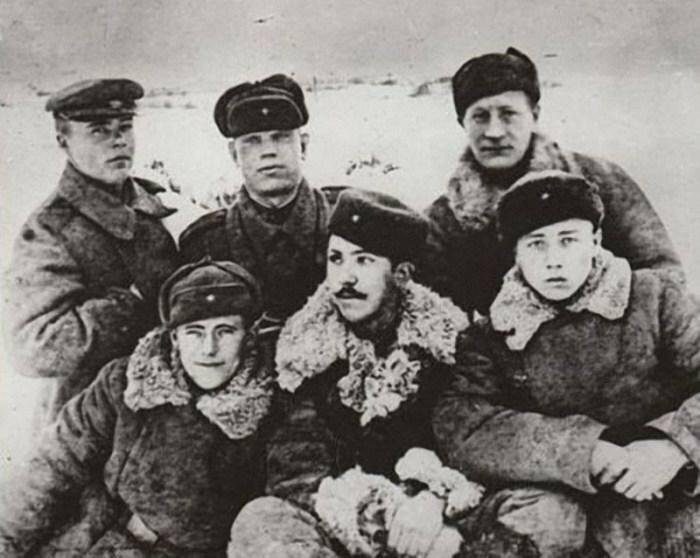 Старший сержант Юрий Никулин на войне с боевыми товарищами. 1940-е..