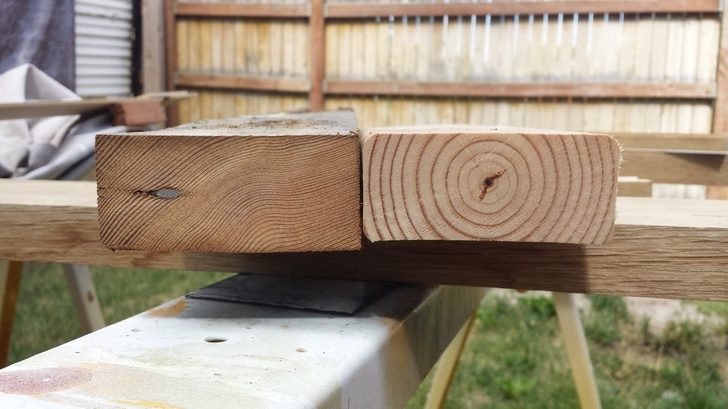 Обычный брусок дерева в 1927 году и в 2015 году. По кольцам видно, что сегодня в производстве в основном используются молодые деревья