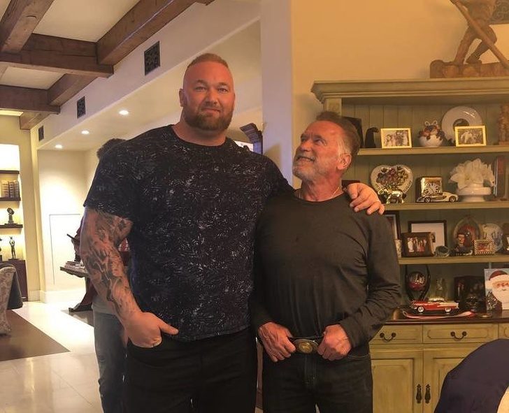 Актер Хафтор Бьернссон («Гора» из сериала «Игра престолов») рядом с Арнольдом Шварценеггером