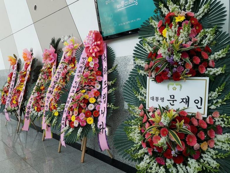 То, что на фотографии — это остатки от hwahwan. По сути, это большой букет, который дарят в Корее по особым поводам — свадьбы, похороны, открытие собственного бизнеса.