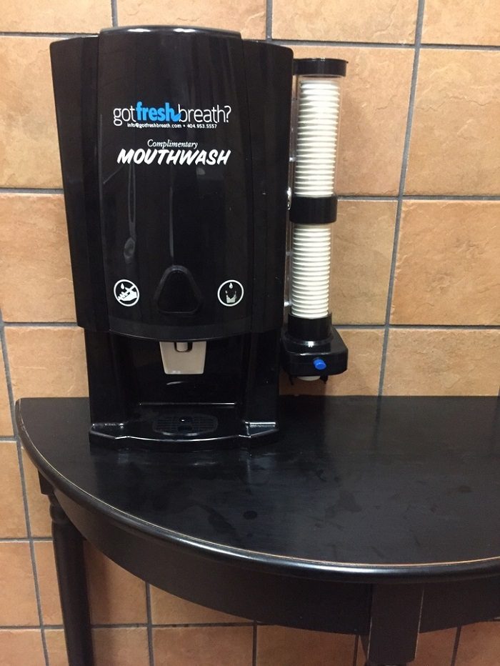 В туалете поставили кулер для полоскания рта после еды