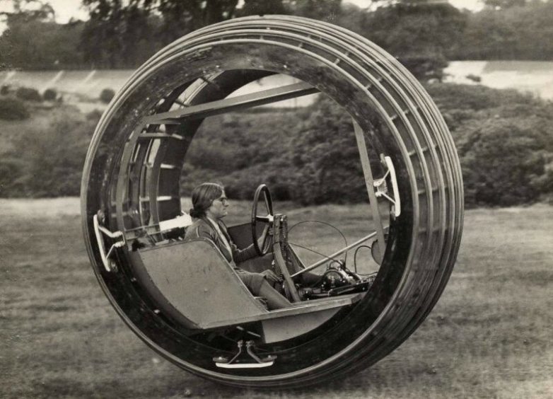 Женщина за рулем экспериментального моноцикла «Dynasphere». Англия, 1931.