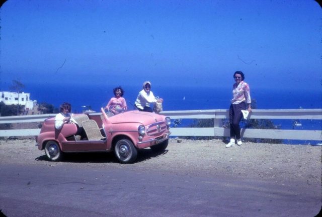 Гламурно-розовый Fiat на острове Санта-Каталина, Калифорния, 1963 год