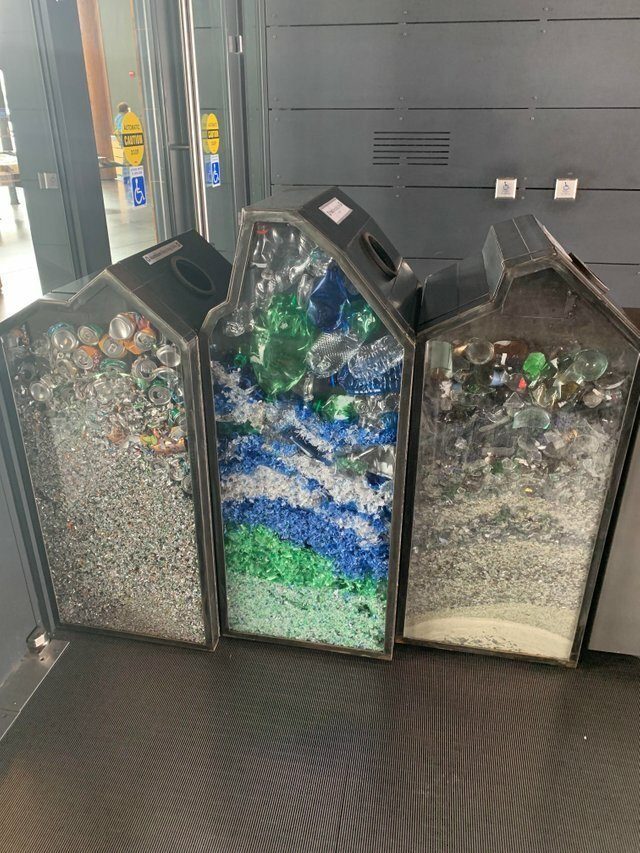 В этих контейнерах стекло, алюминий и пластик на разных этапах переработки.
