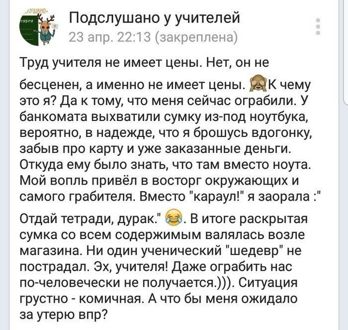 Учитель — это когда тебя даже ограбить не могут по-человечески