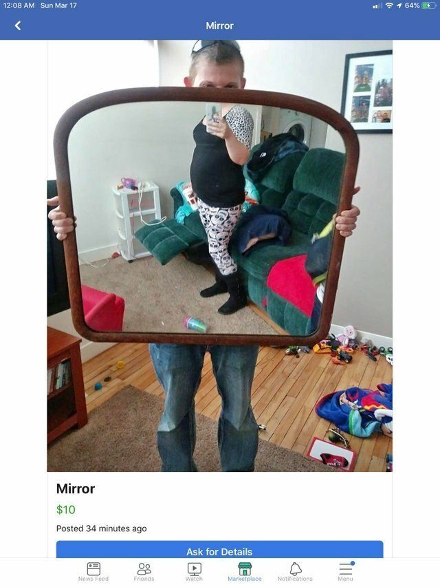 Не самое удачное селфи, чтобы продать зеркало