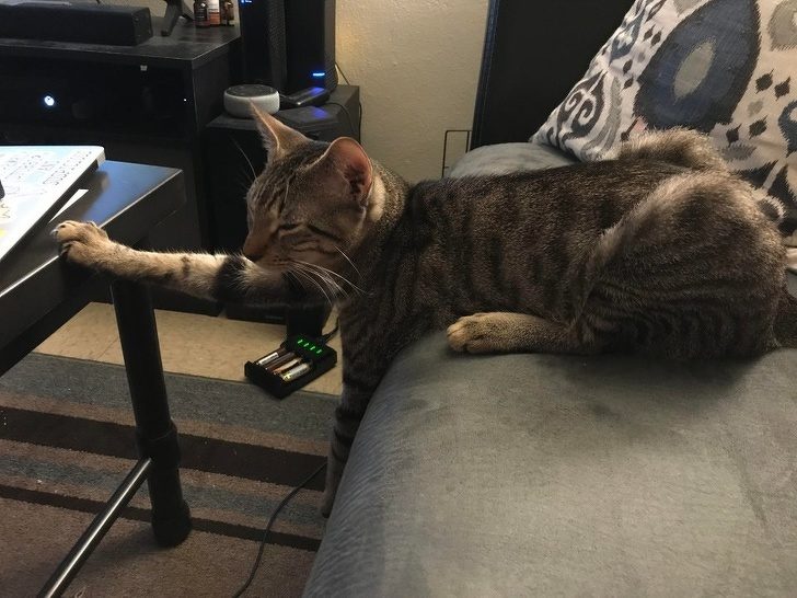 «Приучаем кошку не приближаться к кофейному столику на пушечный выстрел. И вот результат»