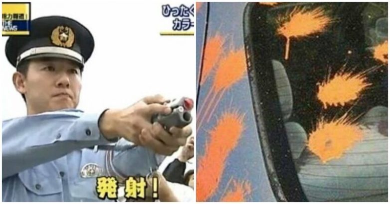 Японские полицейские стреляют краской в машины и людей, чтобы идентифицировать их. Так другие полицейские будут знать, кто преступник