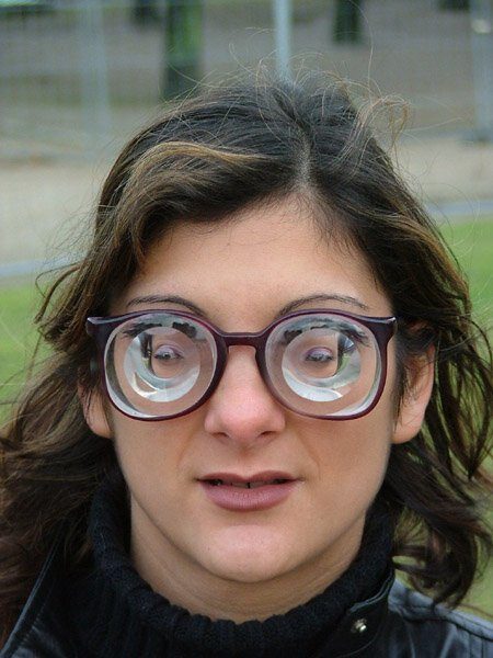 Нет, это не товар из лавки приколов, а специальные очки с диоптриями для людей, чье зрении — 20