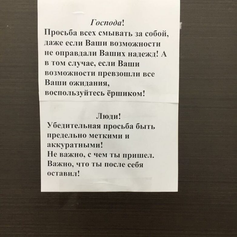 • «Господа просьба всех смывать за собой...» © Во прямо-таки всех-всех смывать? Даже невиновных? :-)