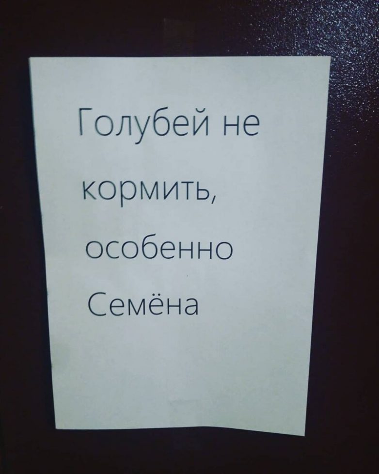 • А чО это особенно голубя Семёна не кормить? Провинился он чо ли? :-)
