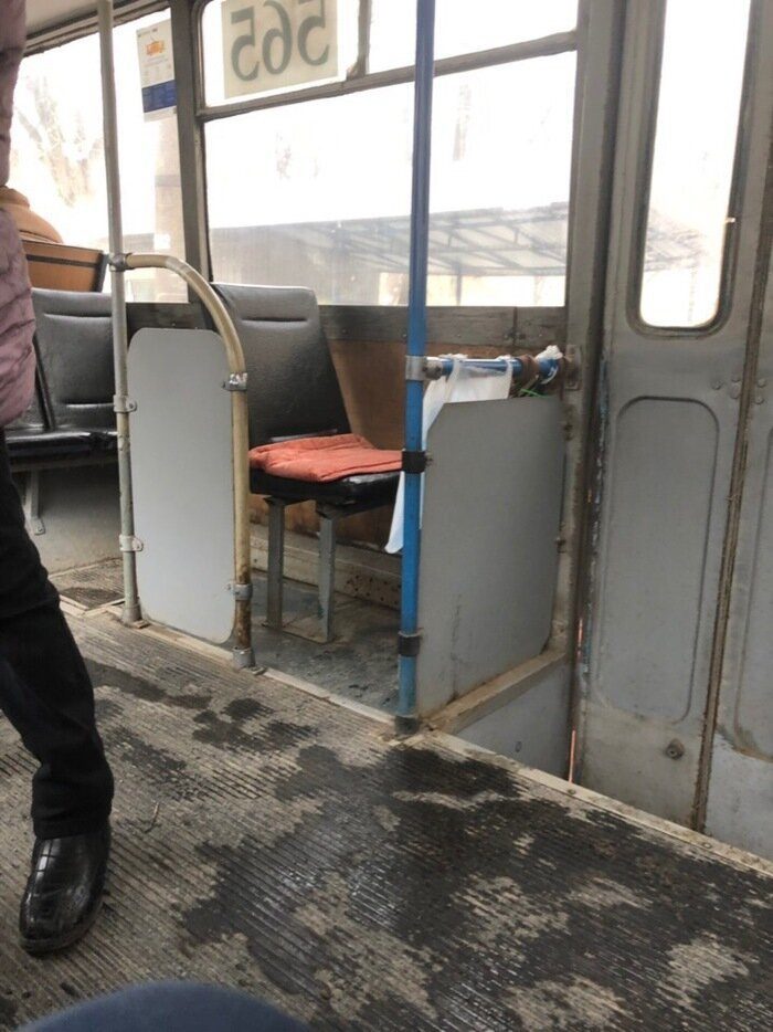А чего кондукторша морду лица прячет-то? Бабульки всё одно вычислят.