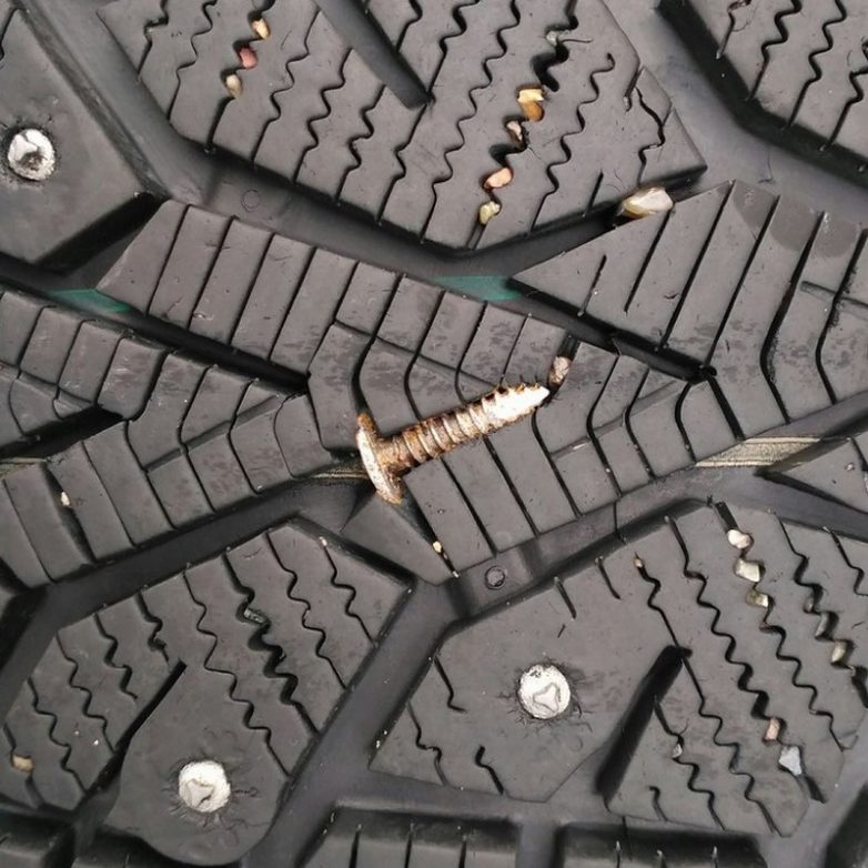 Этот саморез нашел идеальное место в покрышке, вместо того чтобы проколоть ее