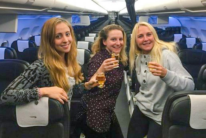 Подруги не стали менять билеты на задерживающийся рейс и полетели втроем в пустом самолете. Им разрешили пересесть в бизнес-класс и позволили сфотографироваться в кабине пилота