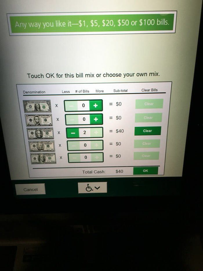 Банкомат с возможностью выбора купюр, которыми вы хотите получить заказанную сумму