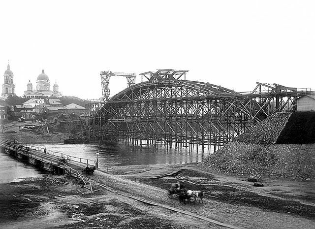 Строительство первого в России арочного моста по проекту профессора Белелюбского, Боровичи, 1904 год