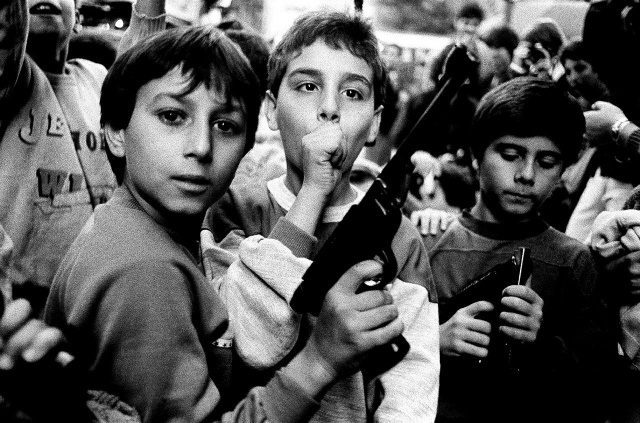 Дети играют с оружием на праздновании Дня мертвых в Палермо, Италия, 1986 год