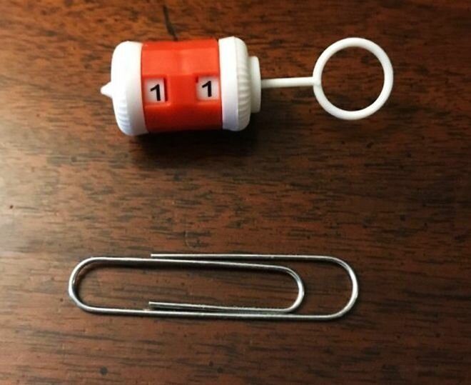 Прибор известен тем, кто любит вязать. На нем выставляется номер петли и ряда, когда нужно отложить вязание, а после вернуться и продолжить с правильного места, чтобы не было ошибок. (скрепка для масштаба)