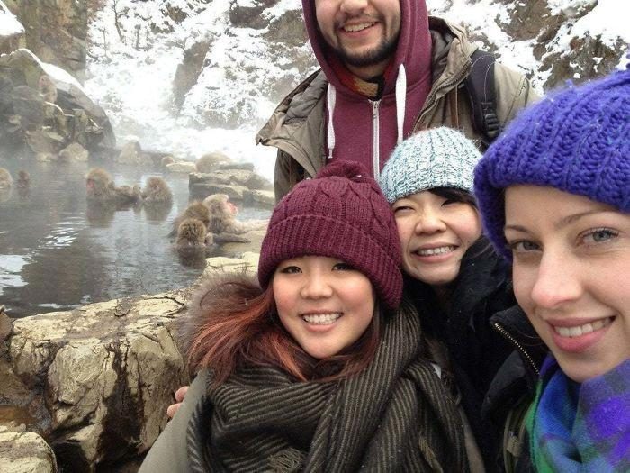 «Попросил парня сфотографировать меня и моих друзей с купающимися снежными обезьянами в Нагано, Япония. Позже я посмотрел фото»