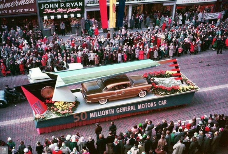 Осенью 1954 года компания GM отпраздновала выпуск своего 50-миллионного автомобиля огромным парадом в Флинте, штат Мичиган. GM Design создал уникальный золотой Chevy Bel Air 55 года по этому случаю.