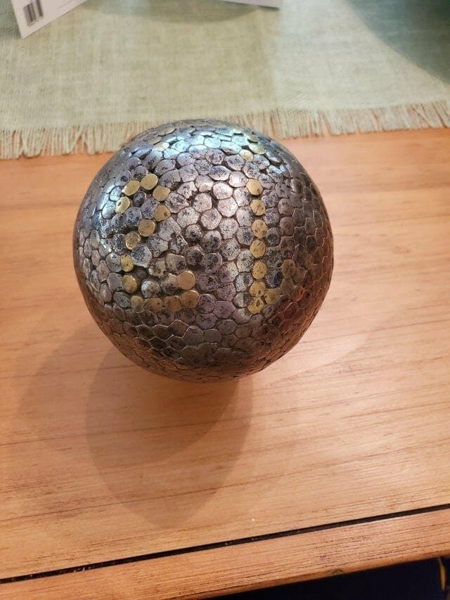 Это шар для игры в петанк, провансальский национальный вид спорта. Цель игры — бросить такой шар так, чтобы она упал как можно ближе к маленькому шару под названием кошонет.