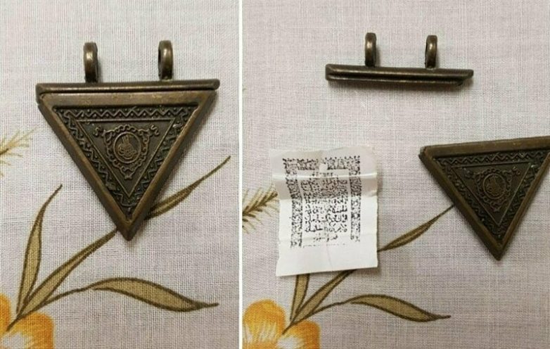 Это молитвенный медальон. Молитва кладётся внутрь, и её можно носить с собой. Скорее всего текст взят из Корана.