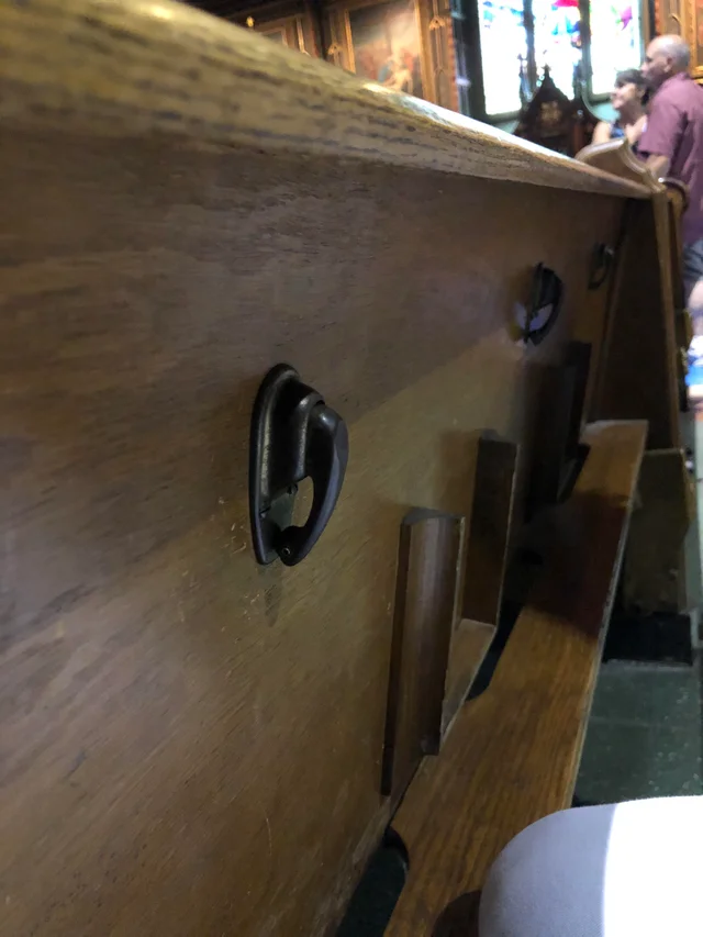 «Всегда было интересно, для чего нужны эти металлические защелки на скамьях в Соборе Монреальской Богоматери?»