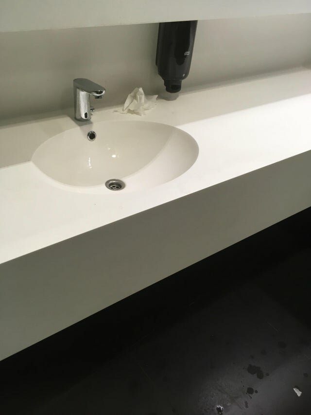 Как в этой раковине помыть руки и при этом не пролить воду за ее пределы?