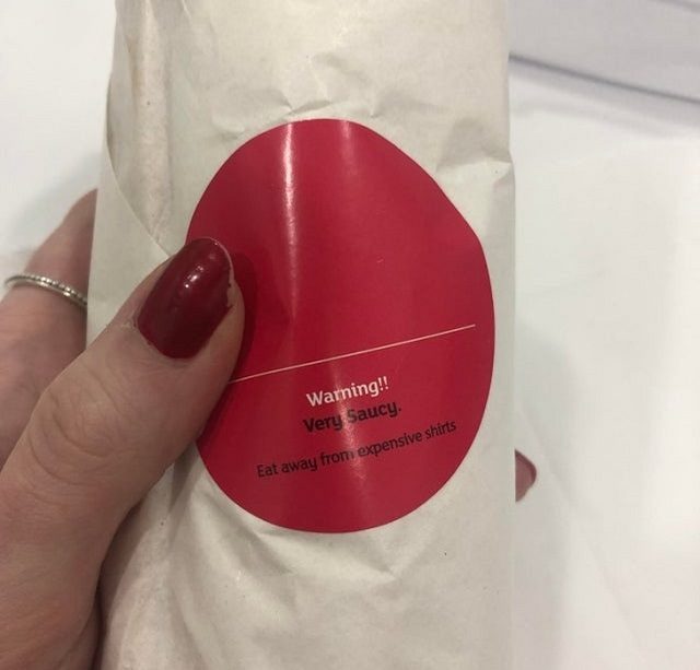 «Осторожно! Очень много соуса. Держите подальше от дорогих рубашек»