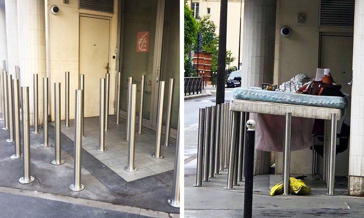 Установили столбики, чтобы бездомные не спали у здания, но не тут-то было
