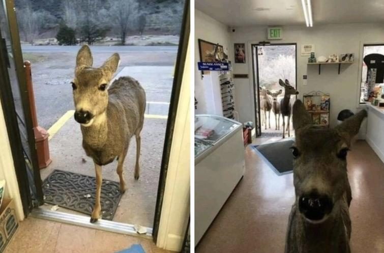 В Колорадо в местный магазинчик пришел олень. Хозяин магазина угостил животное шоколадом, после чего oлень yшёл, но уже чрез полчаса вернулся с друзьями