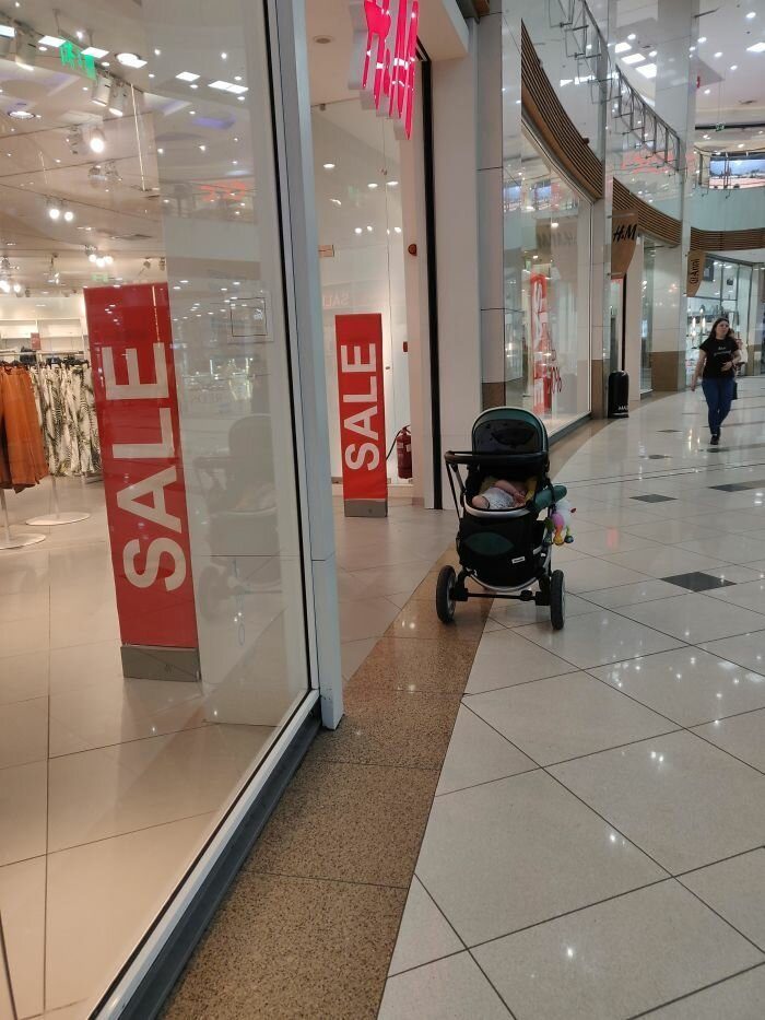 Мама пошла пополнять гардероб, а коляску оставила в коридоре, чтобы не мешалась.