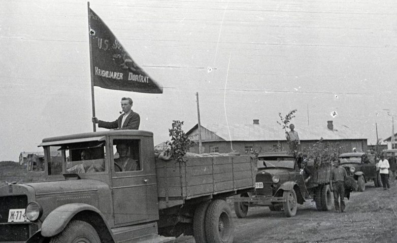 Обоз с хлебом из немецкого села, следующий на ссыпной пункт, 1933 год, СССР
