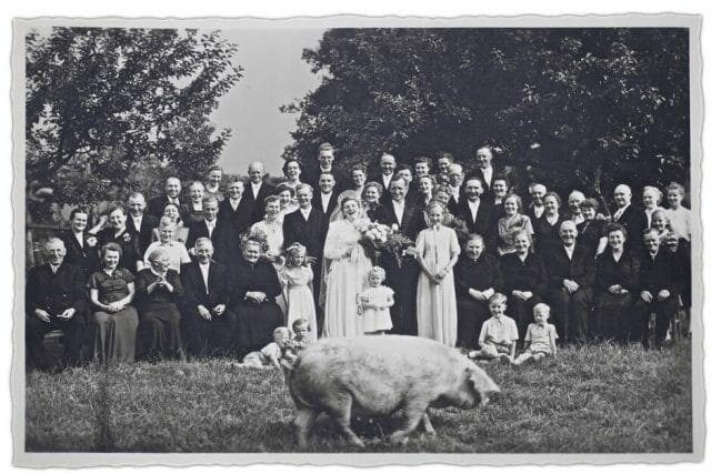 Свинья испортила свадебное фото, 1927 год. Зато всех рассмешила и получилось замечательное фото.