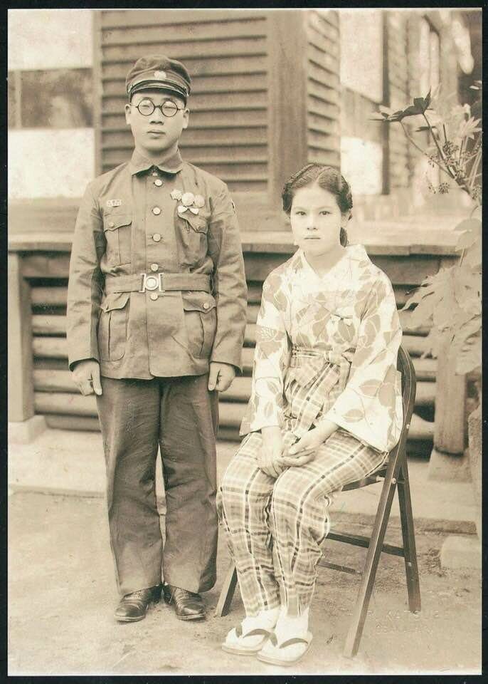 Девушке на фото 16 лет, она пережила войну и жива по сей день. Лицо грустное оттого, что очень хотелось надеть свадебный наряд, но в Японии расцвет милитаризма и в ходу лозунг «Роскошь — твой враг!»