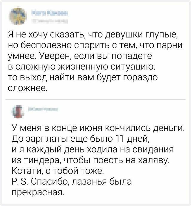 «Спасибо, лазанья была прекрасная»:)) Правильно, и я не говорю никогда, что мы умнее мужчин, потому что это не так, мы просто хитрожопее;)))))