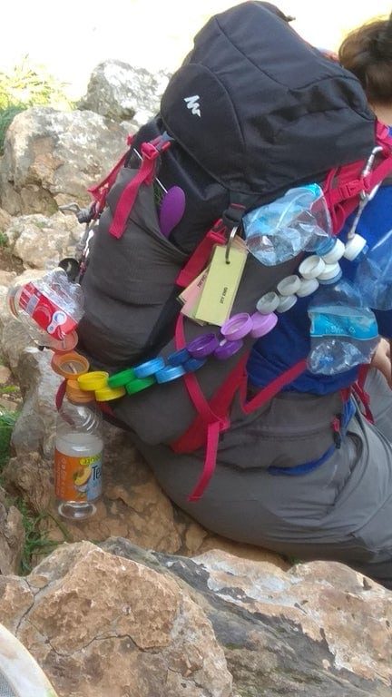 Вот такая «приспособа» от опытного туриста, чтобы собирать выброшенные пустые бутылки и не тратить место в рюкзаке