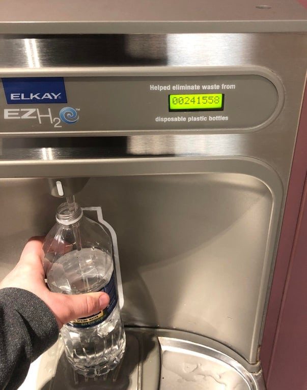 Счетчик потенциально сэкономленных бутылок на фонтане с питьевой водой. Налил себе воды здесь – не купил её в пластике в магазине.