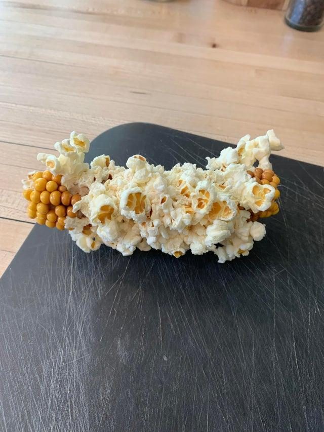 Кукуруза превратилась в попкорн прямо в початке