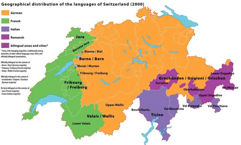 5. В Швейцарии 4 национальных языка — немецкий, французский, итальянский и романшский.